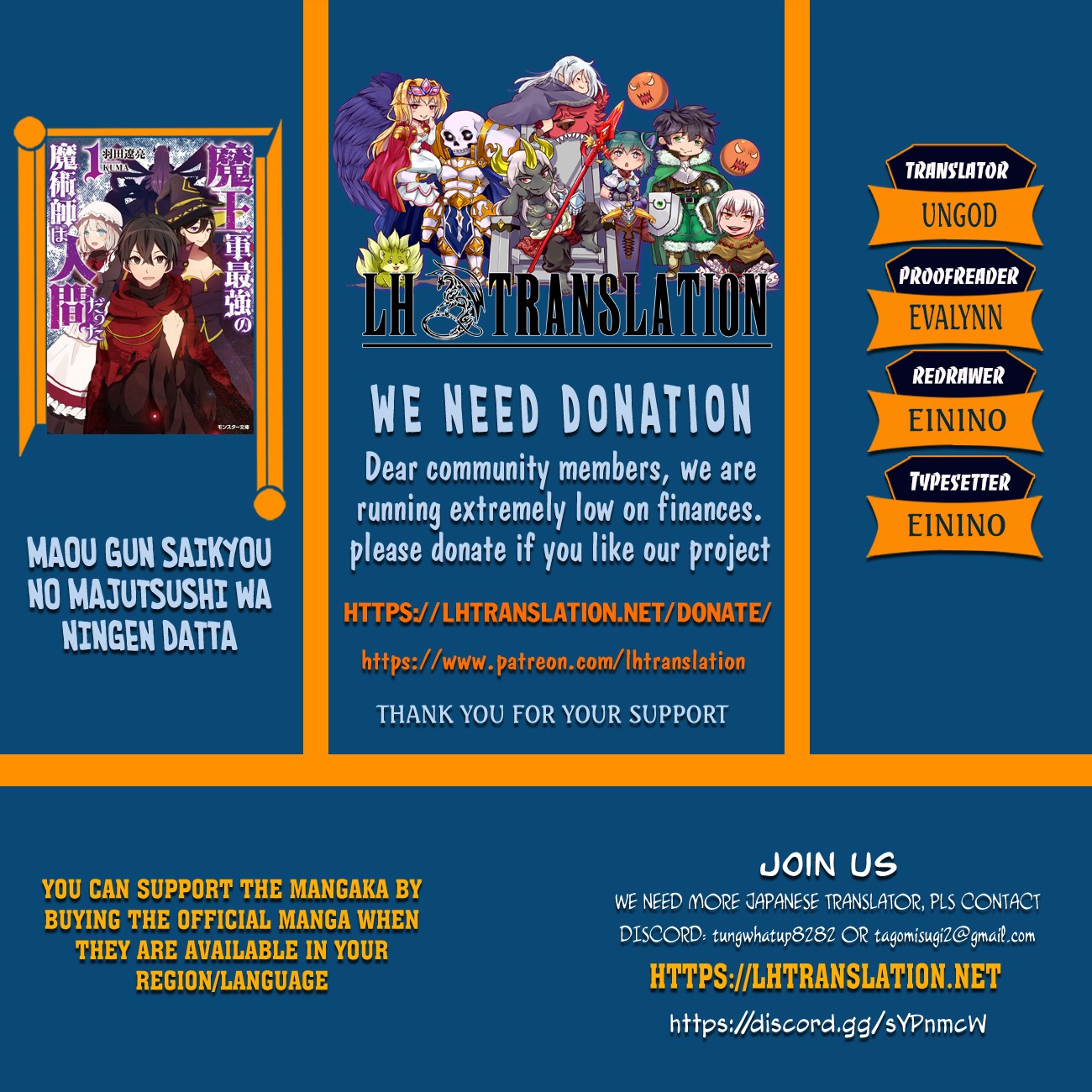 Maou Gun Saikyou no Majutsushi wa Ningen datta